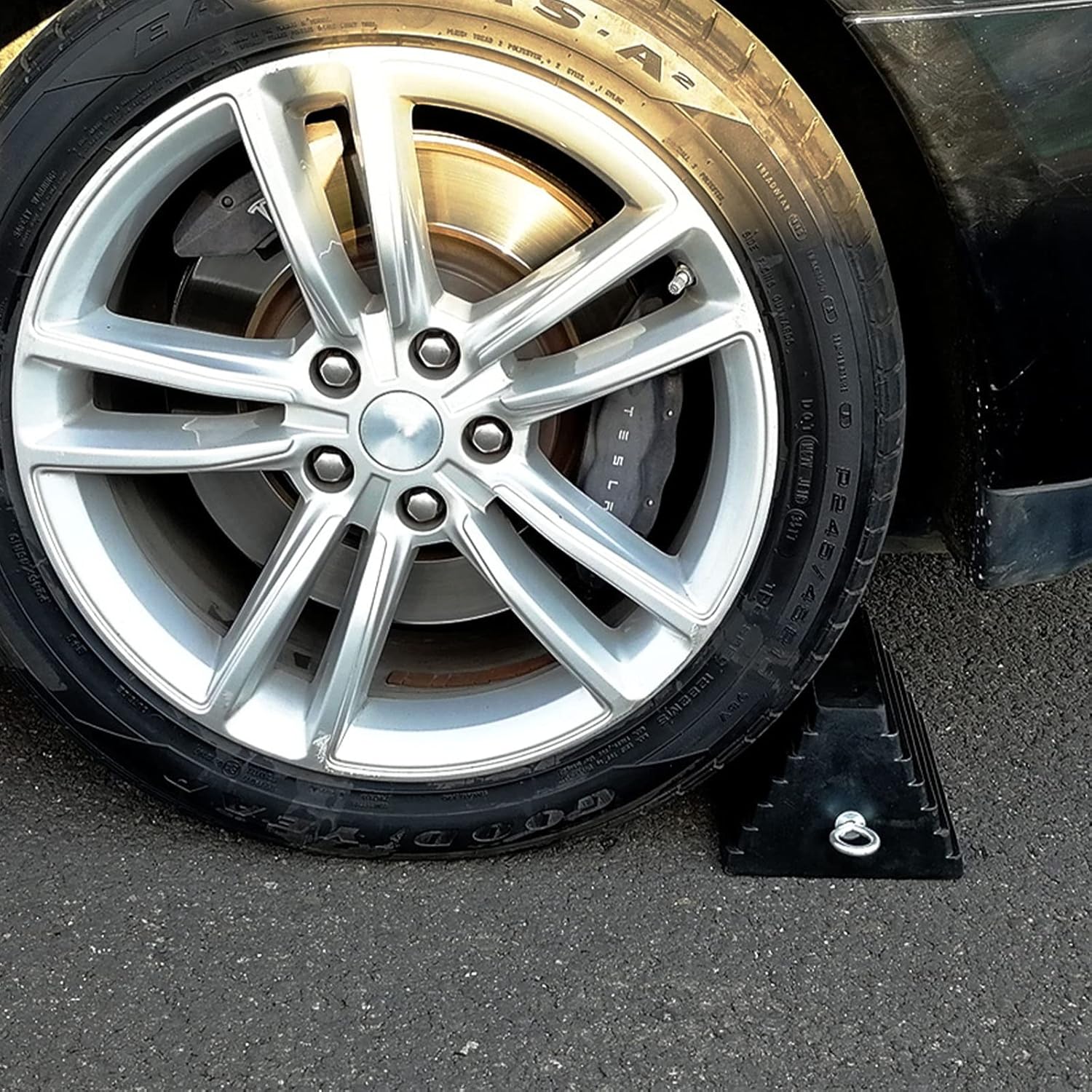 ROBLOCK 2 Pack Wheel Chocks Rubber Heavy Duty Black with Eyebolt, 9" Length x 7.1" Width x 5.5" Height, for Cars, RVs, Trucks, Trailers, and Vehicles, Anti-Slip Design Tire Chock for All Weather Use