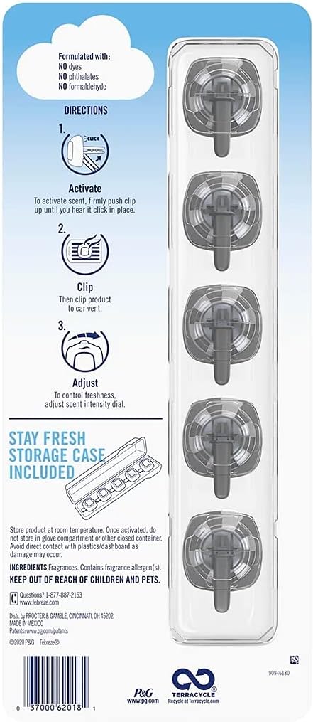 Febreze Car Air Freshener, Set of 5 Clips, Linen & Sky - up to 150 Days