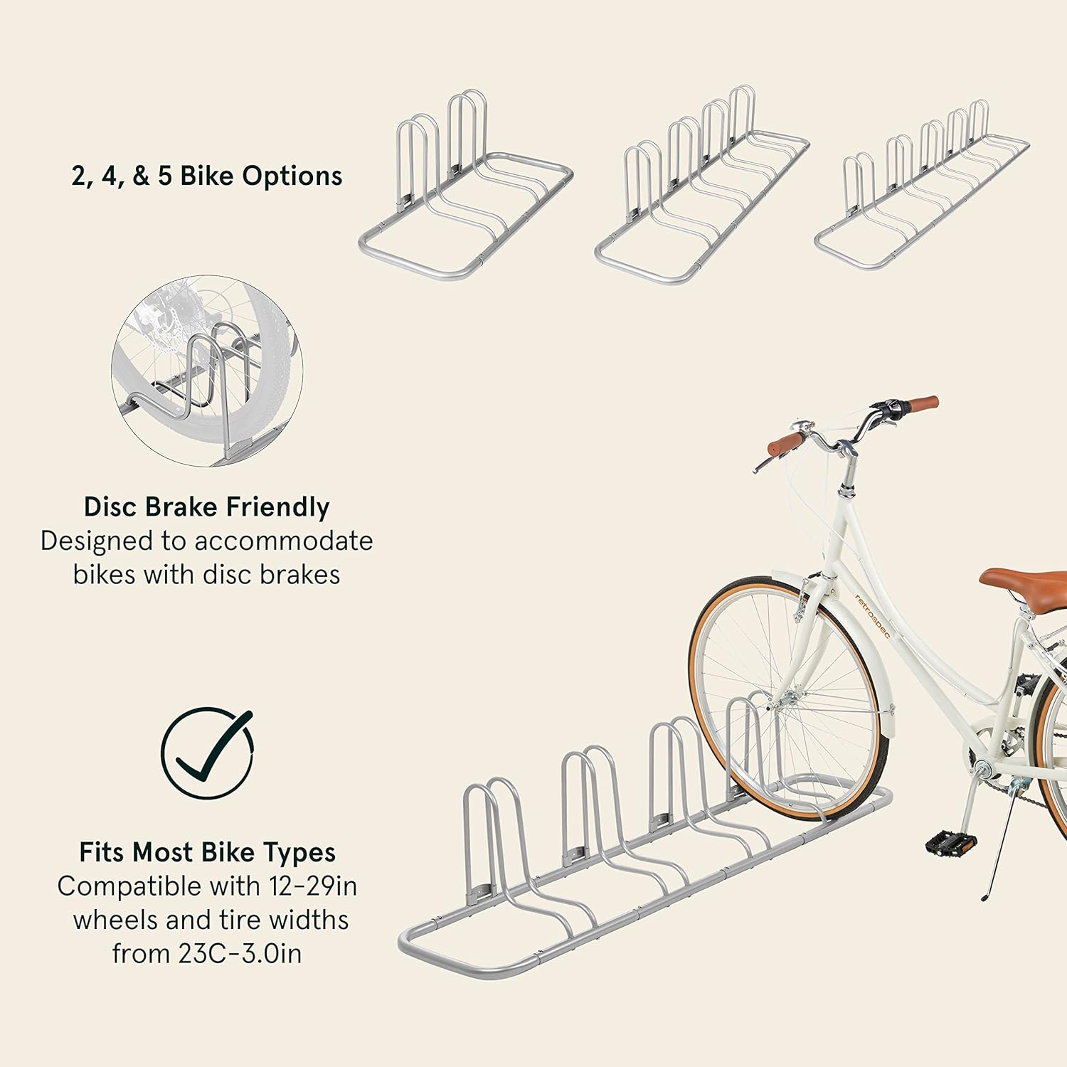 Retrospec Stash Rack 2, 4 & 5 Bike Floor Stand Bicycle Storage Organizer for Mountain Bike, Road Bike, Weather Resistant Fine Powder Steel Coating Fits Wheels up to 3"