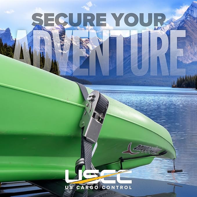 US Cargo Control Stainless Steel Ratchet Straps with Double Wire Hooks (2-Pack), 1" x 10', 1,500 LBS Break Strength, Marine Tie Down Straps for Boats, ATVs, Camping, Snow, Saltwater Applications