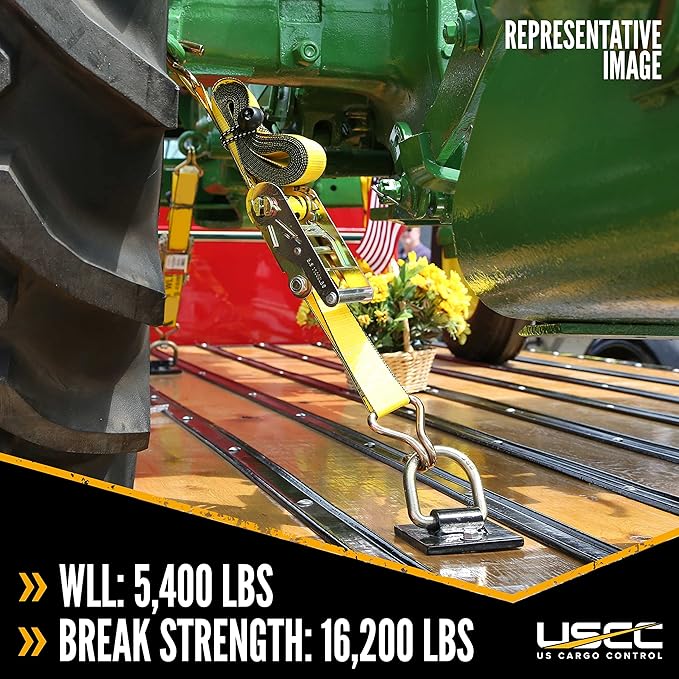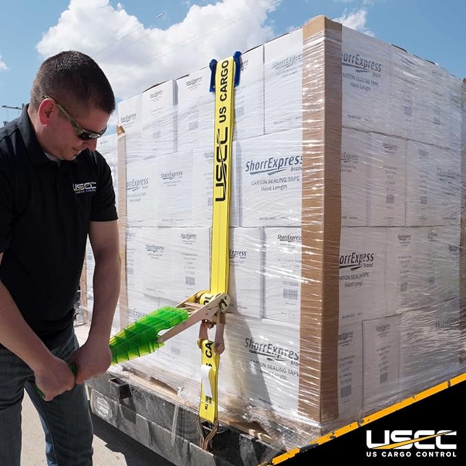 US Cargo Control 4 Inch x 20 Foot Heavy Duty Yellow Ratchet Strap with Wire Hooks, 2 Pack