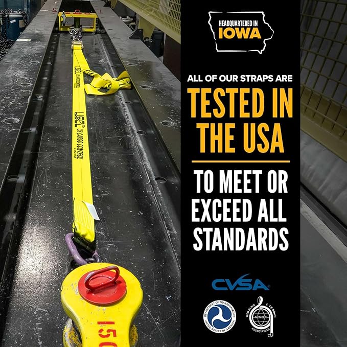 - QUICK IDENTIFICATION - US Cargo Control Tie Down Straps are tagged with working load limits and compliant with US DOT and Commercial Vehicle Safety Alliance (CVSA) guidelines, and meet or exceed Web Sling and Tie Down Association (WSTDA) standards.