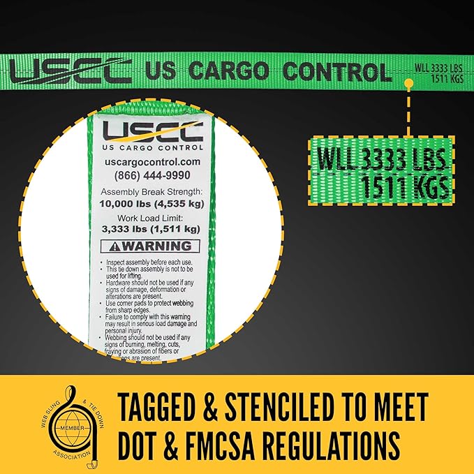 - STRONG DURABLE WEBBING - The green webbing has a 12,000 pound break strength to be stronger for you. The webbing on these straps is made of weather safe polyester, so it will hold up in wet conditions, and to UV rays.