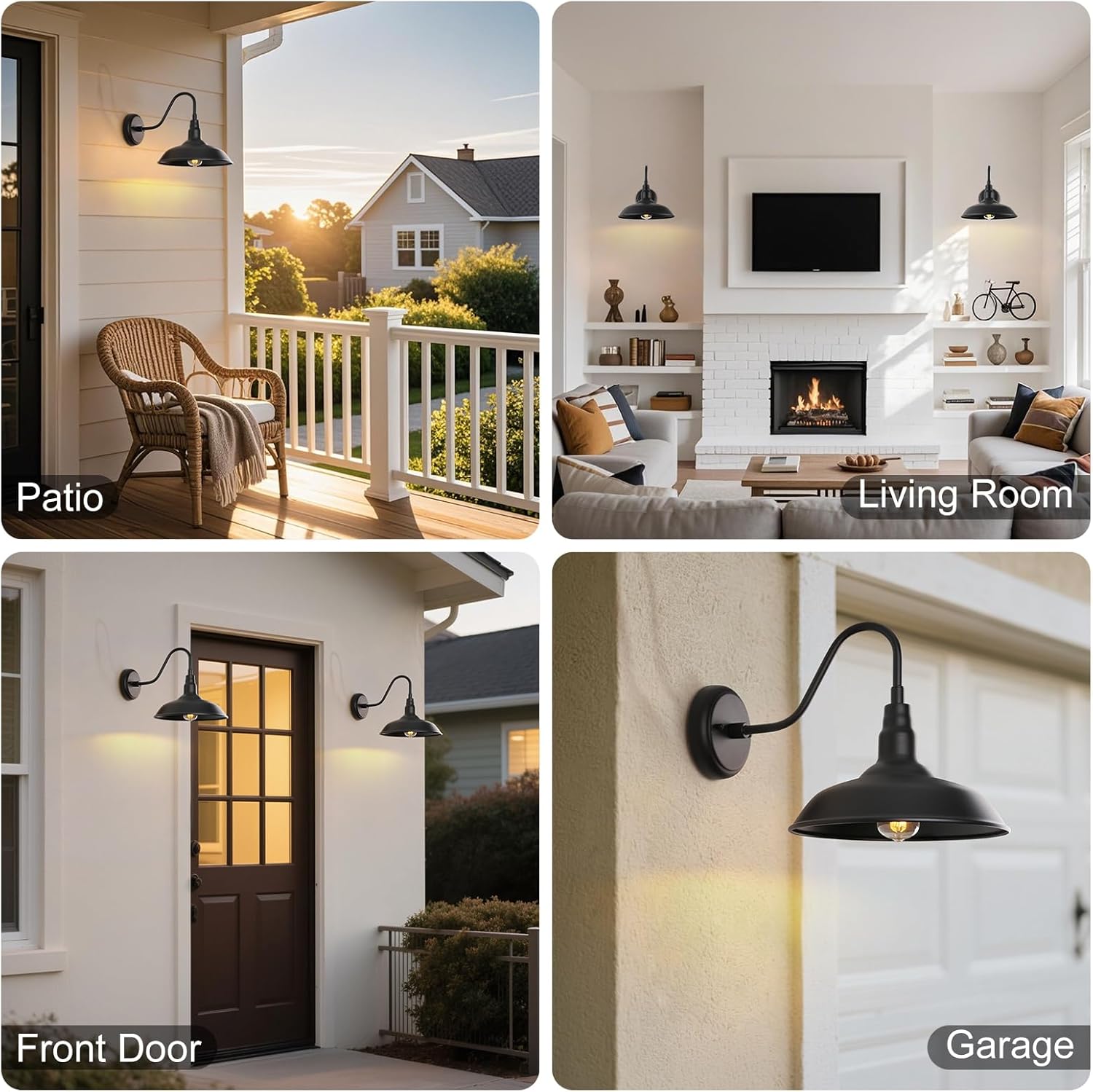 - Industrial Wall Light Fixture Makes Your House Look Unique Stylish: Featured with its classic gooseneck arm, simple 10 inch dome design, finished by a matte black powder coating finish, this barn style light brings a pleasing and modern simplistic elements to both exterior and interior place. The open bulb area of this sconce also spreads the light farther, meets the illumination needs for your farmhouse, cabin, garage, doorway, garden, porch, yard
