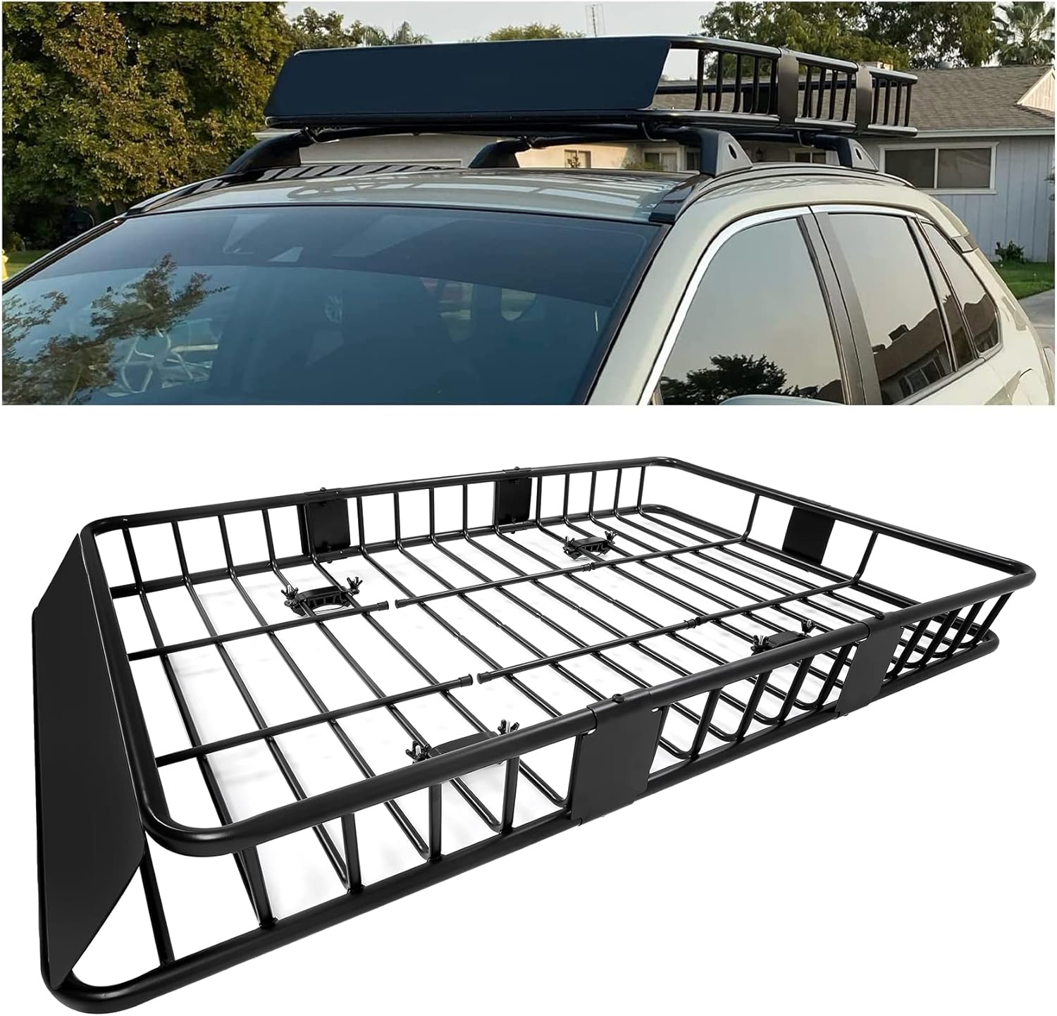 ECOTRIC 67" x 39" x 5.1'' Universal Roof Rack Cargo Carrier Basket with Extension Heavy Duty Steel Car SUV Top Luggage Storage Holder Basket for Travel 550LBS Weight Capacity