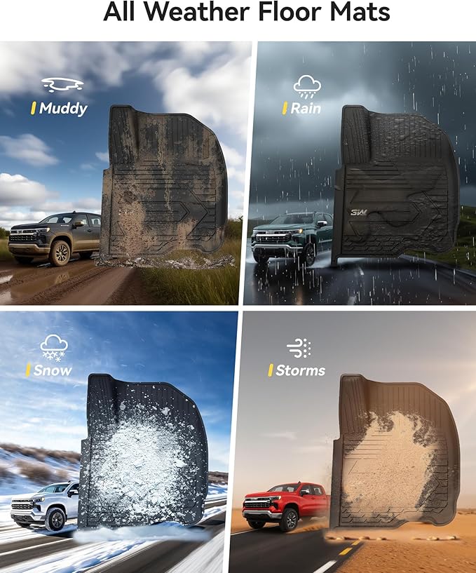 - ALL WEATHER AND DURABILITY: These durable gmc sierra/sierra denali & silverado floor mats are easy to install and can be used all weather, which are stain-resistant, waterproof and anti-slip, preventing your carpet from rain, slush, snow, mud and protect your car during a typical winter or summer.