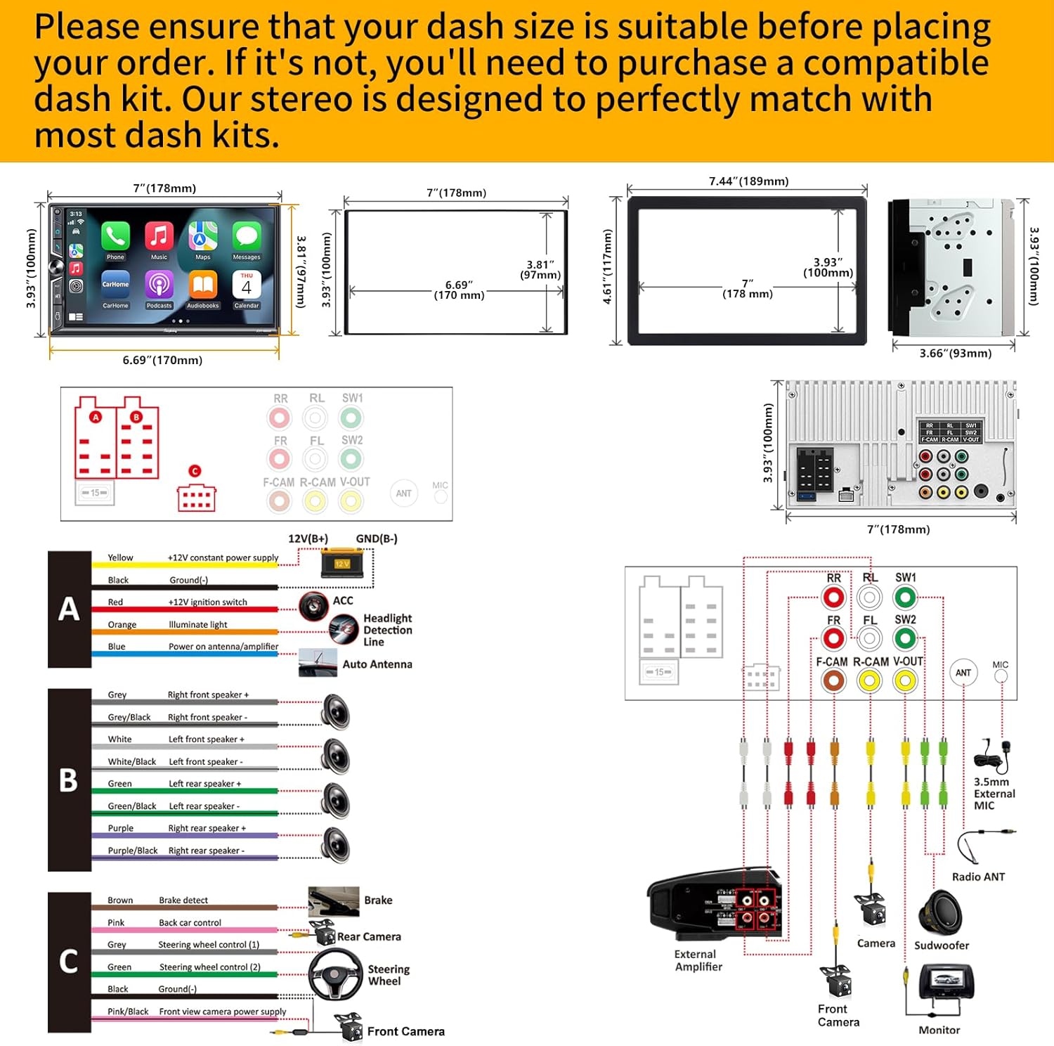 - Important Tips: â‘ Please make sure your dash board opening size fits our car stereo. If our stereo size does not meet your dash size, you will need to purchase an additional suitable dash kit. â‘¡Please read the instructions before installation and it is recommended to install at a professional car audio shop. â‘¢Additional after accessories also needed to complete the installation: Wiring harness adapter and radio antenna adapter for your car model.