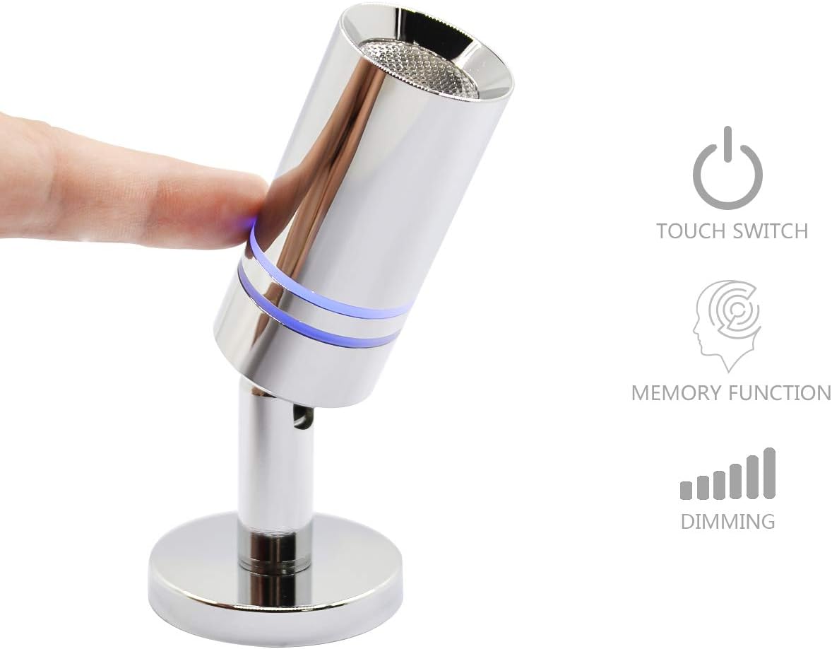Small 12V RV Reading Light 3W DC 12 Volt LED Camper Lights Interior Warm White Interior Lights with Built-in Dimmer Touch Switch of Blue Decor Light On Trailer Van Truck Car Motorhome Caravan Boat