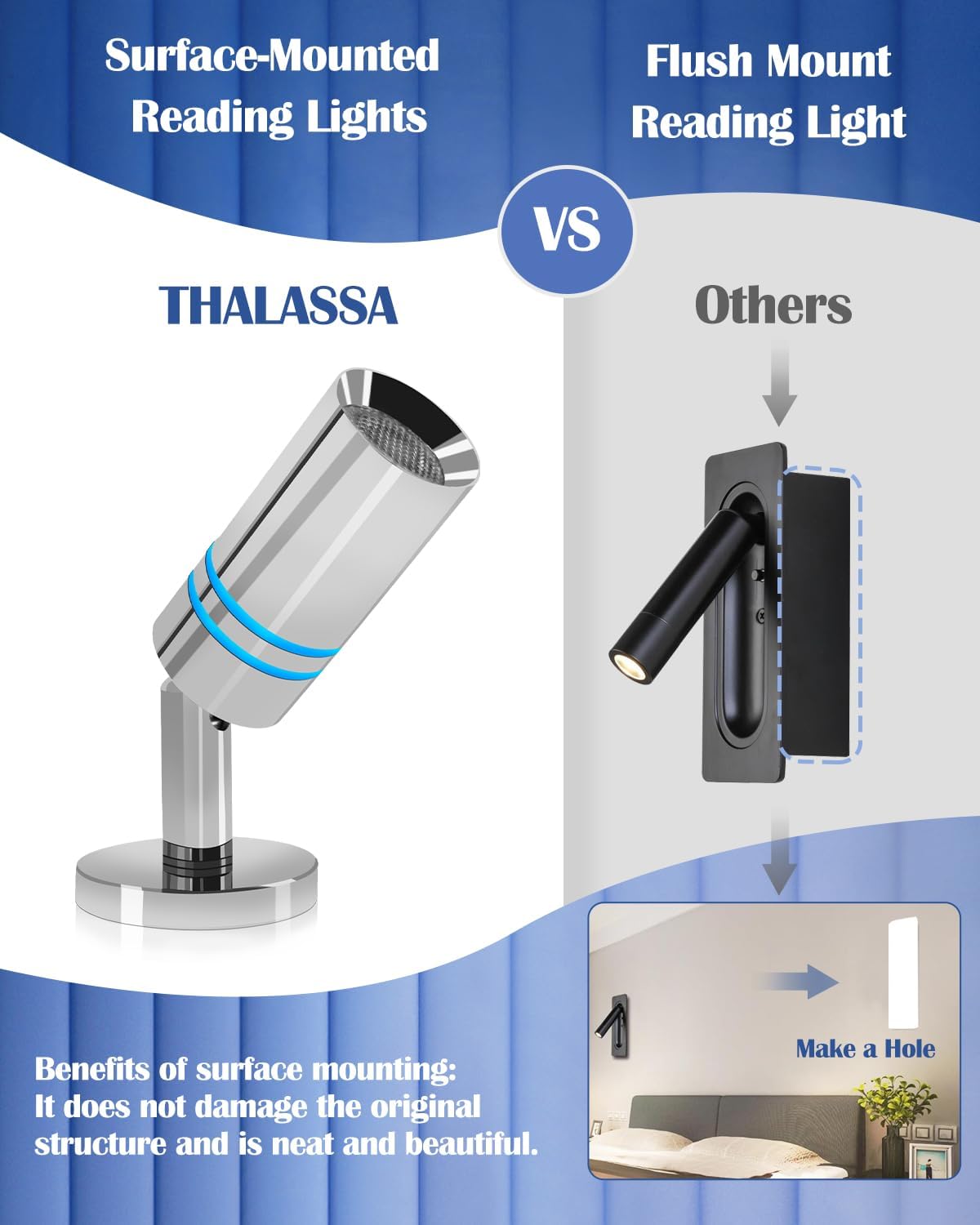 - [Two Lighting Modes] - Warm white and beautiful blue lighting to meet different lighting needs. Touch the switch once to get the blue night light, click it again and hold it for a while to get a soft white light.