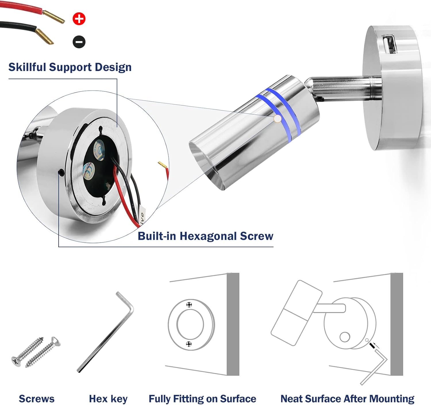 - Accessories Complete: Hexagon Screwdriver, Metal Screws, Red&Black pre-wired and Installation Instructions.