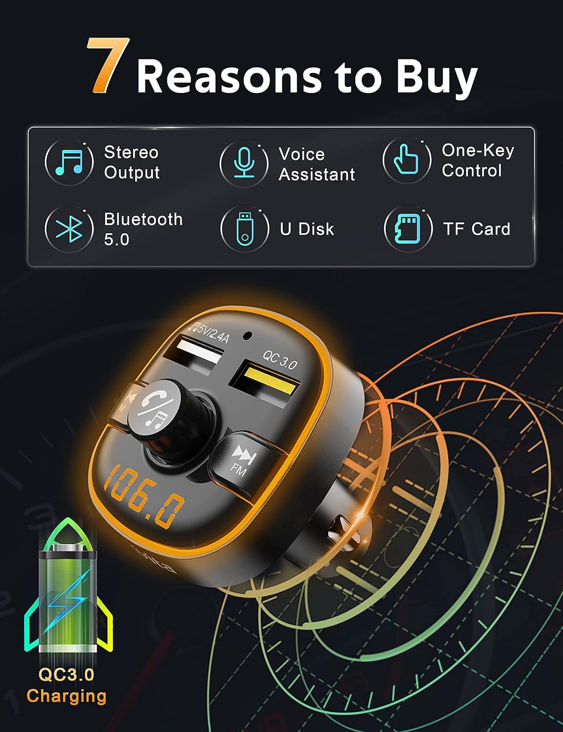 - 【Function Collection】 What are your expectations? Dual USB ports, QC 3.0 fast charge, Hand-free calls, Voice assistant, High-fidelity sound quality output, LED display, 7 colors and 2 modes of ambient light, Support U disk, TF card and Bluetooth 3 music playback modes. And what else? Please look forward to our new model.