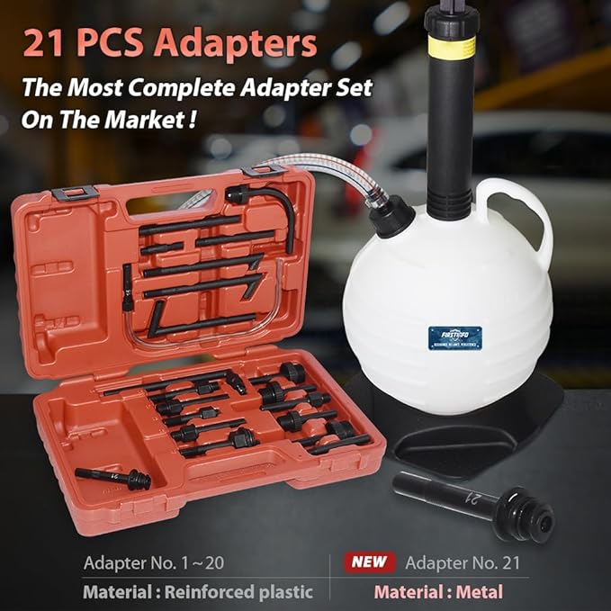FIRSTINFO A1141HN Taiwan 21-Adapter Manual ATF Filler System, 6L High-Capacity Manual Transmission Fluid Pump Tool for Automatic Transmission Fluid Oil Refill