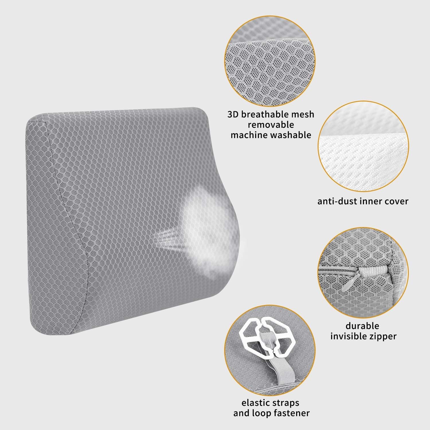 Memory Foam Lumbar Support Pillow for Car - Lower Back Support Cushion for Driving, Back Pain Relief for Car Seat, Office Chair, Wheelchair (Gray)