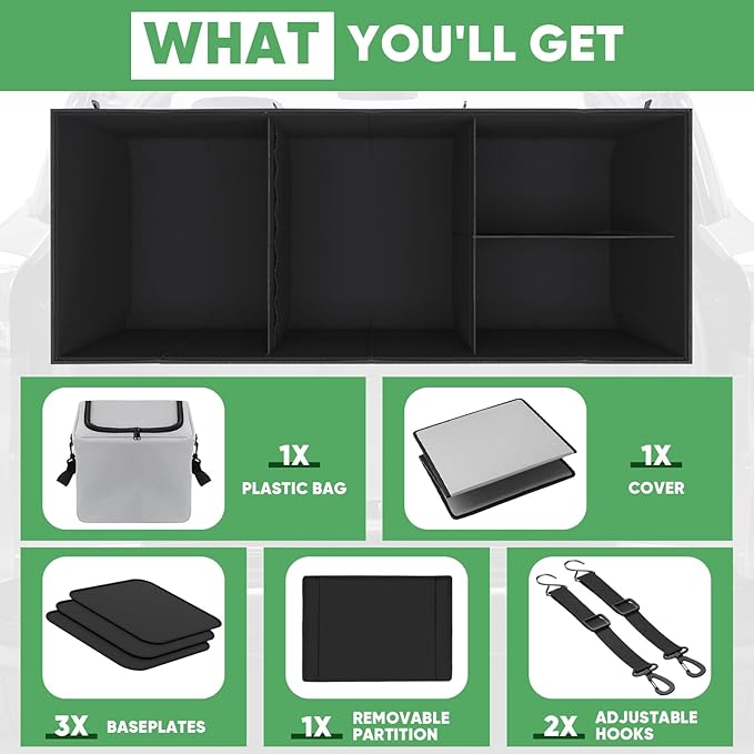- šćBUY WITH CONFIDENCEć- If for any reason you're not completely satisfied with our car trunk organizer, please contact us in time, and we will solve it for you as soon as possible. Please rest assured to buy