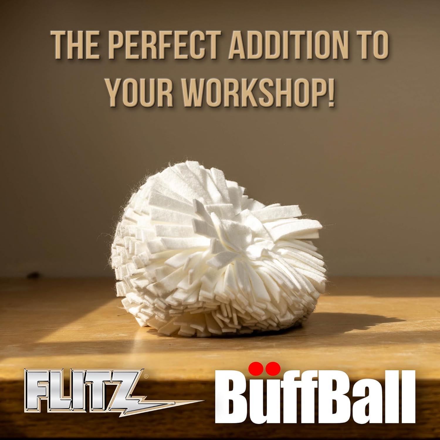 Flitz Buff Ball w/ 1.76oz Metal Polish Paste - 5in Drill Buffer Polisher Attachment for Any 3/8in Drill - Self-Cooling, Washable Polishing Ball to Buff, Shine, & Protect All Metals, Plastics (1 Pack)