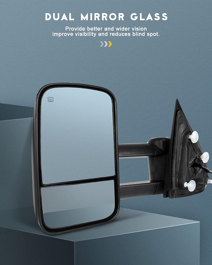 - Wider Visibility: Our Towing Mirrors Provide Better And Wider Angle Of Rear View,Improve Visibility And Reduces Blind Spot. So You Can Make It Easier To See Road Condition