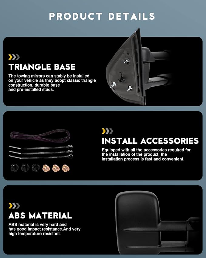 - Wider Visibility: Our Towing Mirrors Provide Better And Wider Angle Of Rear View,Improve Visibility And Reduces Blind Spot. So You Can Make It Easier To See Road Condition