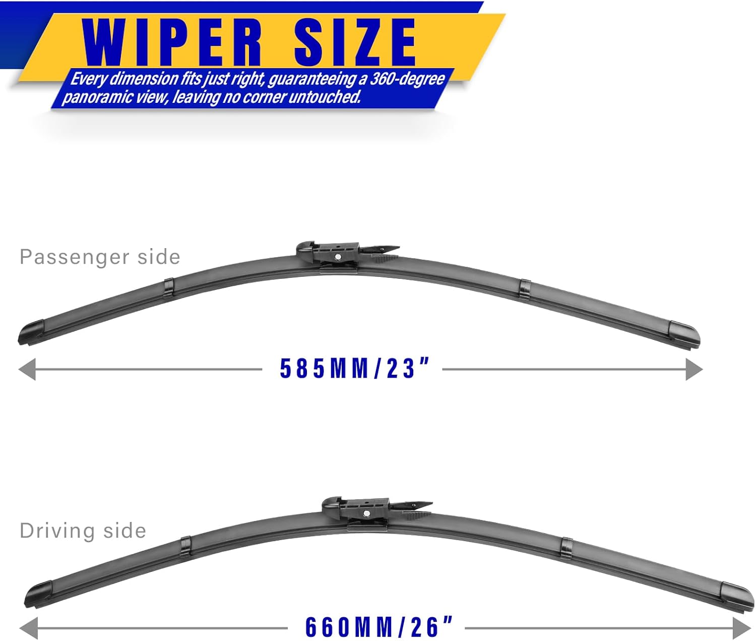 - ăWORRY-FREE SHOPPINGă 2Pcs wiper blades 26"+23" and Instruction Manual. One Year warranty! Refund or return anytime in one year, Long life, smooth engagement.