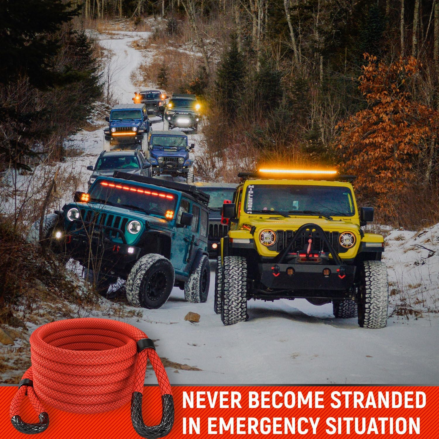 MiolleGear Kinetic Recovery Rope kit (7/8" x30', 10000lbs WLL) Heavy Duty Tow Rope - Includes 2 Soft Shackle 3/8 for UTV, ATV, Truck, Car, Jeep, Tractor