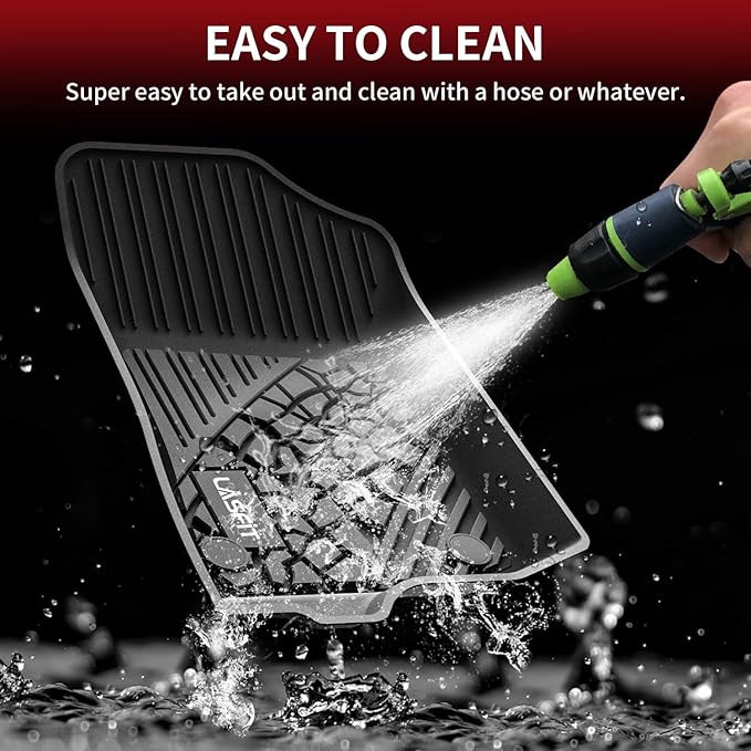 - ALL WEATHER PROTECTION - Shields your floor from dirt, mud, salt, rain, snow and even hot summer temperatures. Cleaning up daily wear and tear off our car mats is a breeze.