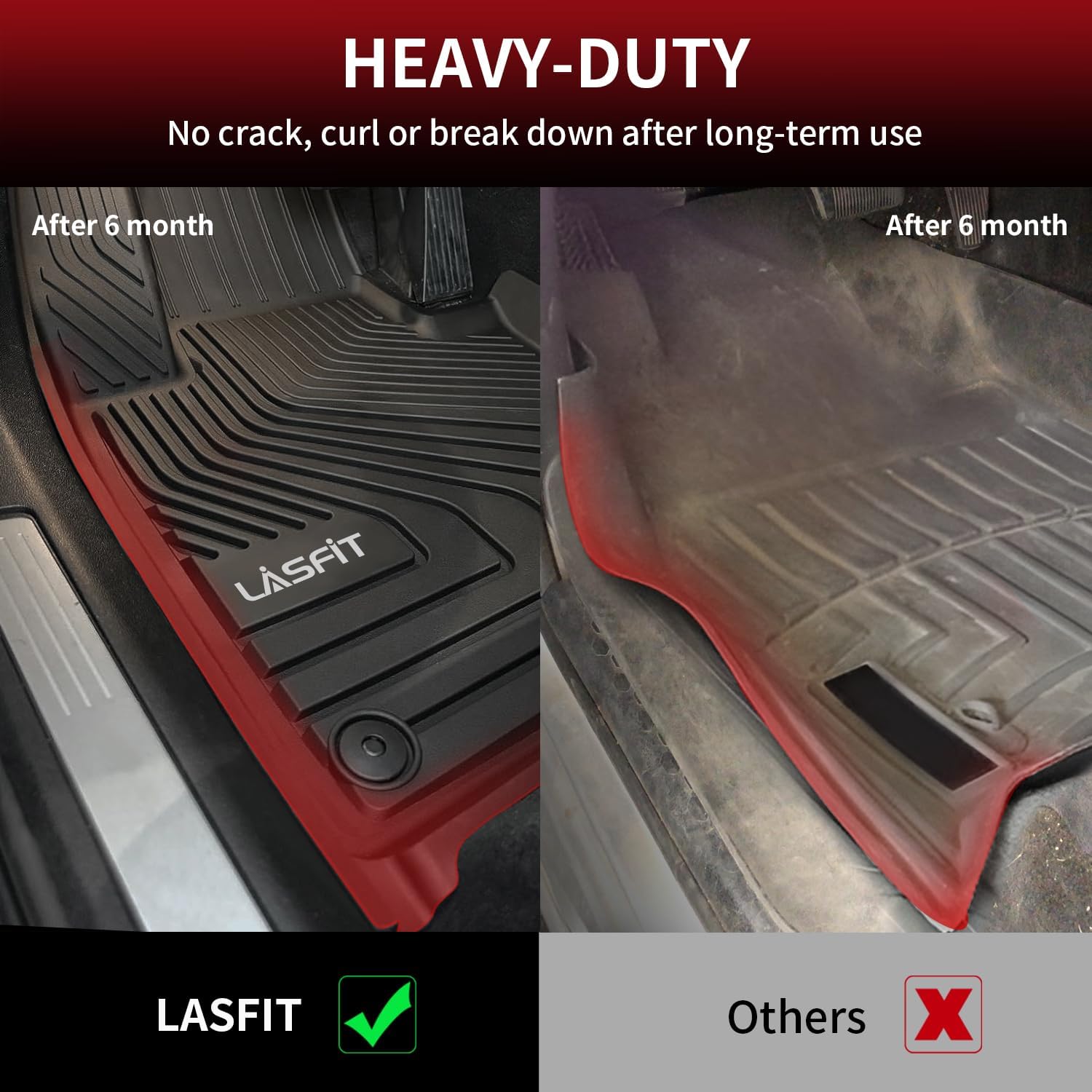 - DURABILITY & COMFORT: The raised edges all around have been upgraded with innovative materials to make our floor liners last longer, more durable, and won't curl or bend, ensuring they maintain their shape and appearance as well as not interfering with brake and accelerator pedal operation while providing luxurious comfort.
