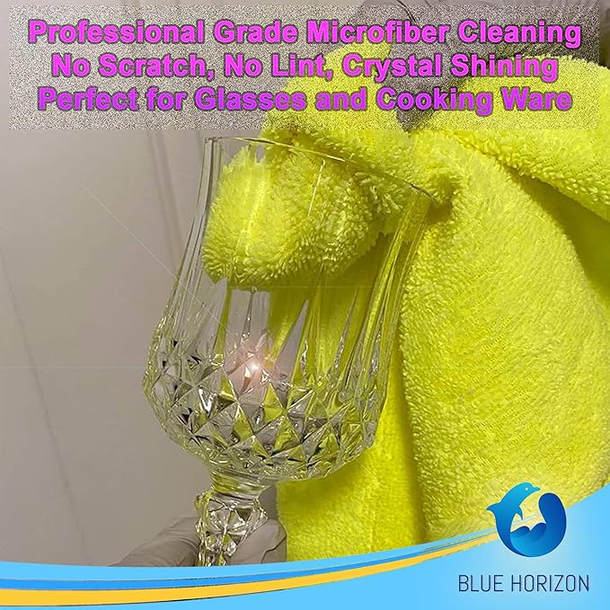 Blue Horizon Microfiber Cleaning Towels, 36-Pack, Ultra Soft Plush Washcloth, Professional Grade Premium Microfiber Detailing Cleaning Cloths, Car, Household and Commercial (Yellow, 16" x 16")