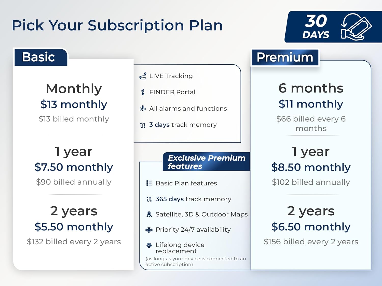 - SUBSCRIPTIONS REQUIRED: Choose from various subscription plans that include a SIM card, device replacement, and round-the-clock customer support. With options ranging from monthly to multi-year plans starting at $5.50/month, managing your car’s security has never been easier.