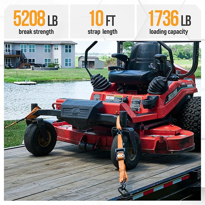 - Multifunctional – Tie down straps ratchet mechanism offers durability and security to transport a variety of objects. Securely tie down your motorcycle, bike, kayak, UTV, boat, ATV, boxes, boat, cooler, & other cargo via trailers, or car roof rack.