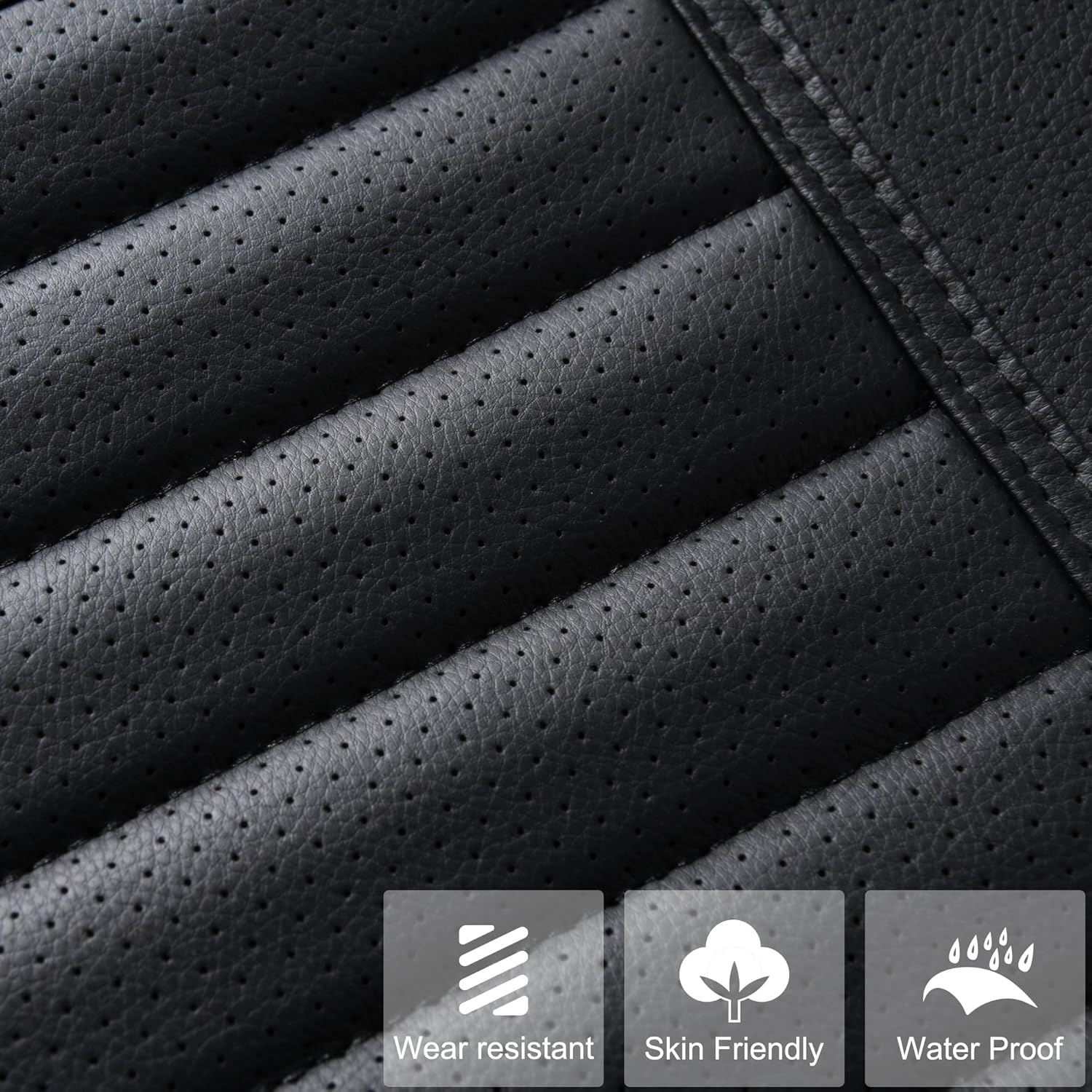 - ✅Premium PU Leather Material-The auto seat cover is made of high-grade soft PU leather, waterproof, easy to scrub, durable and good breathability. Built-in a layer of highly flexible sponge, four seasons applicable. Maintain the comfort of the buttocks, helps relieve pressure on hips and thighs from driving for a long time. At the bottom of cushion is rubber sole which prevent falling off from your car driver seat.