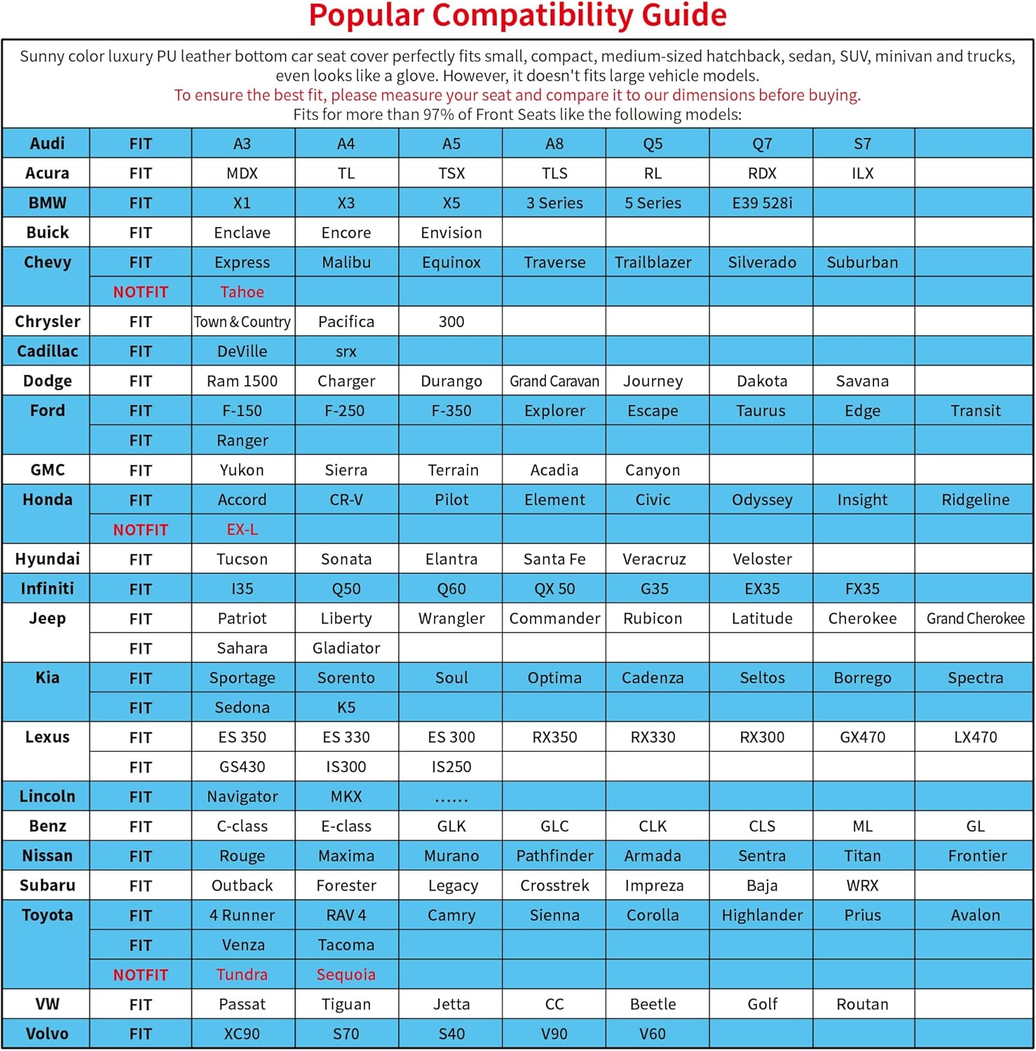 - âś…Universal Car Seat Cushions-Sunny color seat covers for front seat measures 19.7*20.8 inches, suitable for all cars, Suv, trucks and rare vans etc.To ensure the best fit, please measure your seat and compare it to our dimensions before buying.