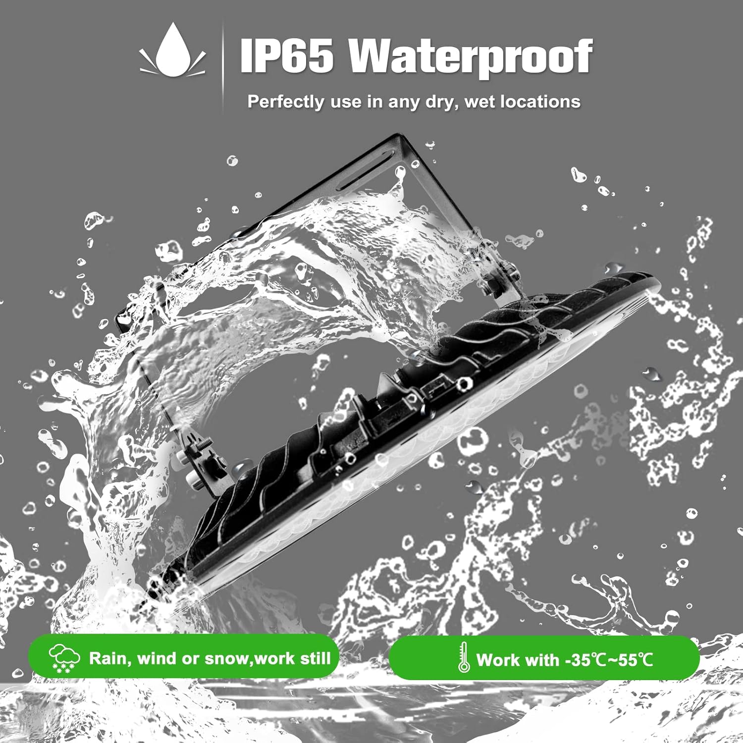 - 【LONG LED LIFE】The high bay led lights adopts aluminum cold forging molding, the structure is sturdy and stable. It uses ufo heat dissipation process, which gets large heat dissipation area and excellent heat dissipation effect. It also extends the lamp lifetime.