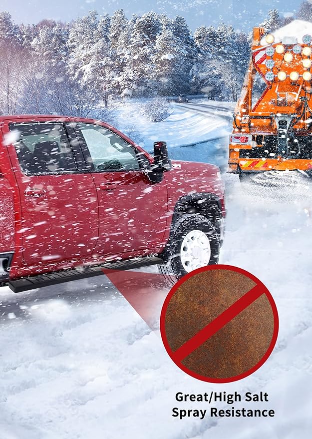 - Running boards structure provides strength and durability. The 6-inch non-slip injection step pad allows for easy movement such as stepping in, stepping out, and even jumping (450 lb. capacity).