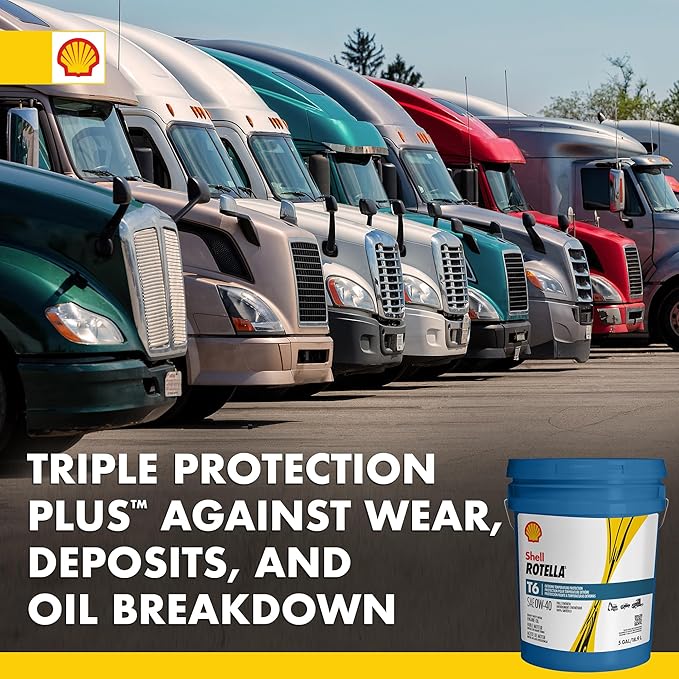Shell Rotella 550054526 T6 Full Synthetic Heavy Duty 0W-40 Engine Diesel Oil - 5 Gallon Pail
