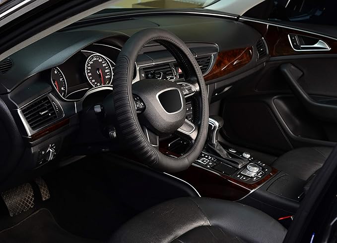 KAFEEK Steering Wheel Cover, Universal 15 inch, Microfiber Leather,Black