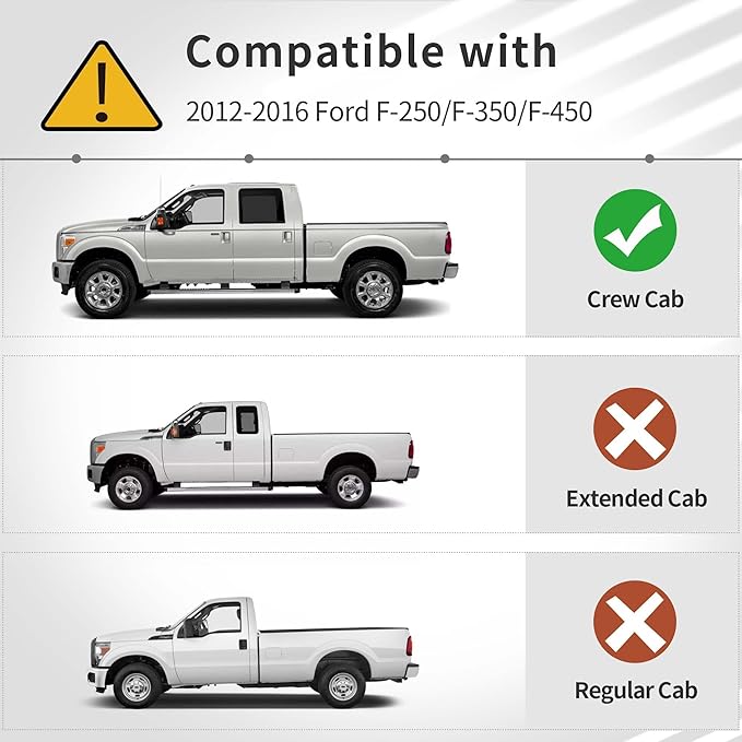 - : Vehicle Service Type Fits for 2012 Ford F-250/F-350/F-450 SuperCrew Cab (dea pedal model only); Fits for 2013 Ford F-250/F-350/F-450 SuperCrew Cab; Fits for 2014 Ford F-250/F-350/F-450 SuperCrew Cab; Fits for 2015 Ford F-250/F-350/F-450 SuperCrew Cab; Fits for 2016 Ford F-250/F-350/F-450 SuperCrew Cab; Fits for 2012 Ford F-250/F-350/F-450 SuperCrew Cab (dea pedal model only); Fits for 2013… See more