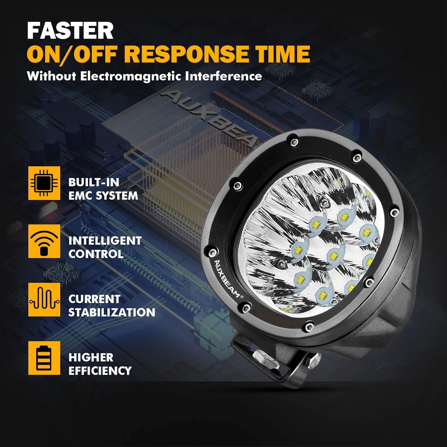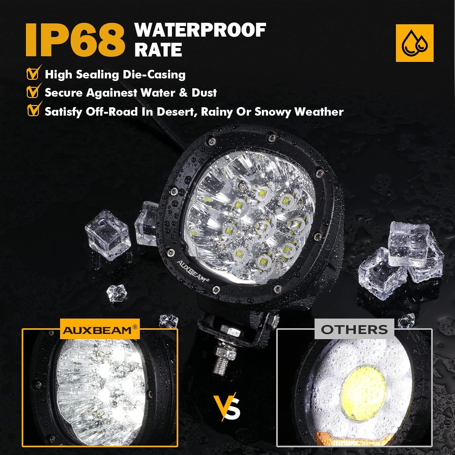 - 【Fast Cooling & IP67 Rate】Auxbeam off road lighting ues new ADC12 shell, oversized heat-sink allow LEDs to run cooler and brighter. Ensure round LED pods lifespan exceeds 50,000 hours. IP67 waterproof, dustproof, shockproof, withstand extreme environment, ensuring a long-lasting performance