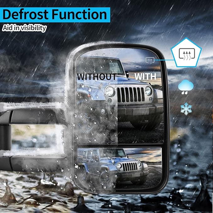 - Power heated: this plane mirror can remove the frost and mist to keep it clear when driving in rain and snowfall weather