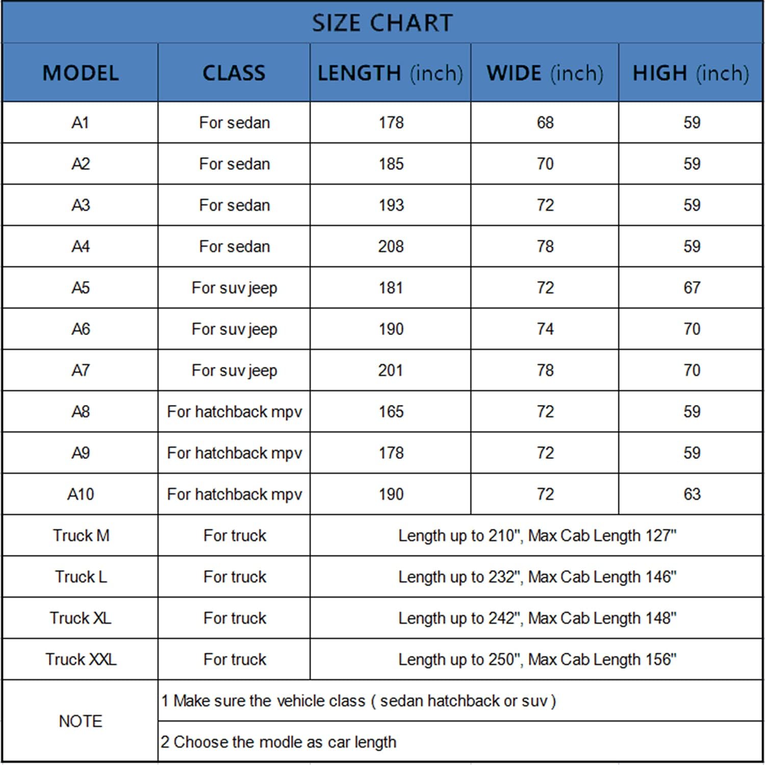 - ăChoose the Right ModelăâŻâŻA3 suitable for sedans, Length 186-193 inches. (Not for hatchback suv). For example Fit Sedan--Toyota Camry/Avalon, Honda Accord/Civic, Nissan Altima/Maxima, Audi a4/a5/a6, Tesla Model 3 etc.If you are not sure if your model is a good fit, look at the fifth model table in the main figure.