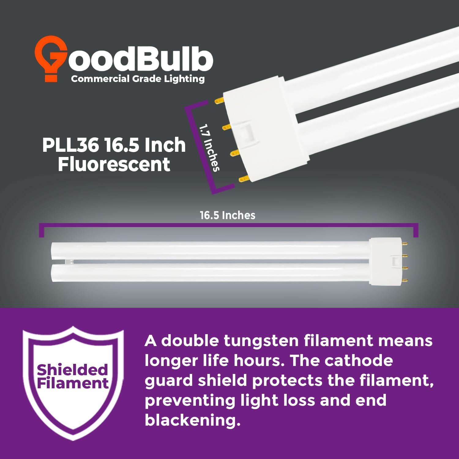 GoodBulb PLL36/865 36W 16.5" Twin Tube Compact Fluorescent Light Bulb 4-pin 2G11 Base 6500K Full Spectrum 2400 Lumen 36000 Hour Long Life Biax Pack of 10