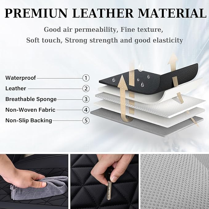 - MODERN DESIGN: Without affecting the original function of the seat, the leather seat covers is compatible with airbags and seat belt sockets, suitable for families with small children and pets Both seat cooling and heating functions work properly and efficiently