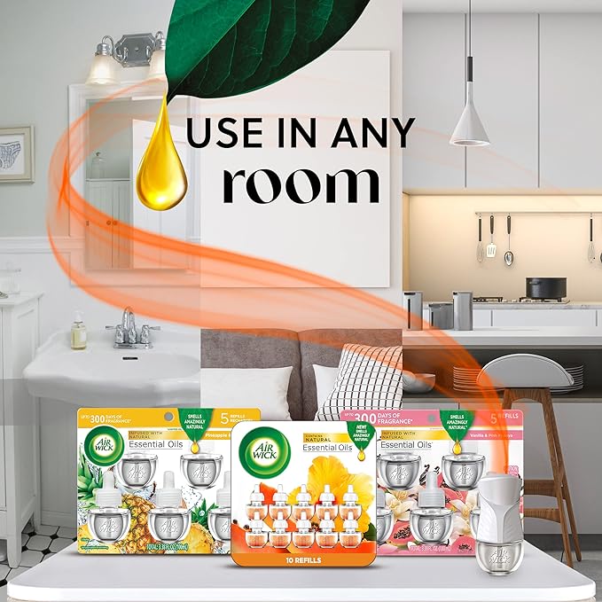 Air Wick Plug in Scented Oil Starter Kit, 2 Warmers + 6 Refills, Hawaii, Essential Oils