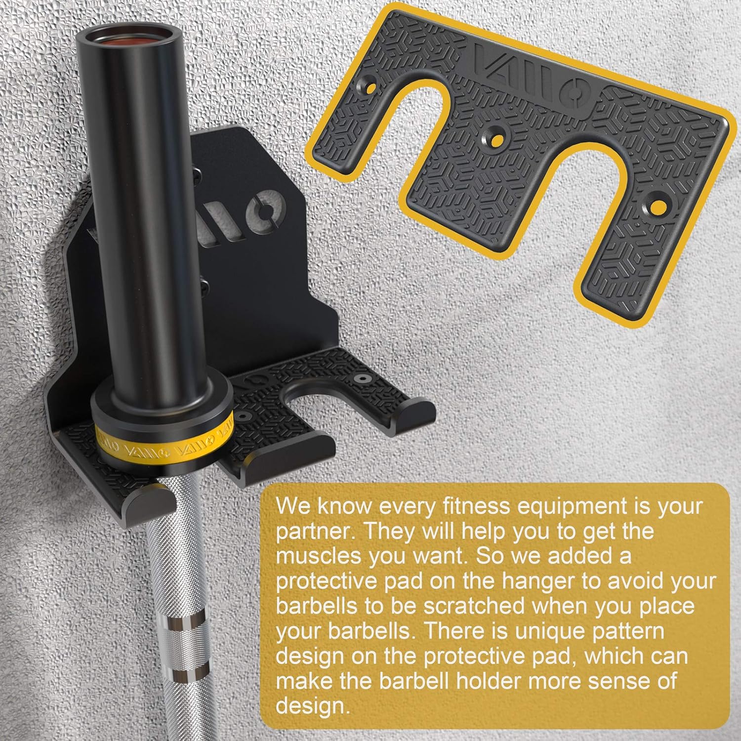 - 🔹【UNIQUE DESIGNED】We know every fitness equipment is your partner. They will help you to get the muscles you want. So we added a protective pad on the hanger to avoid your barbells to be scratched when you place your barbells. There is unique pattern design on the protective pad, which can make the barbell holder more sense of design.