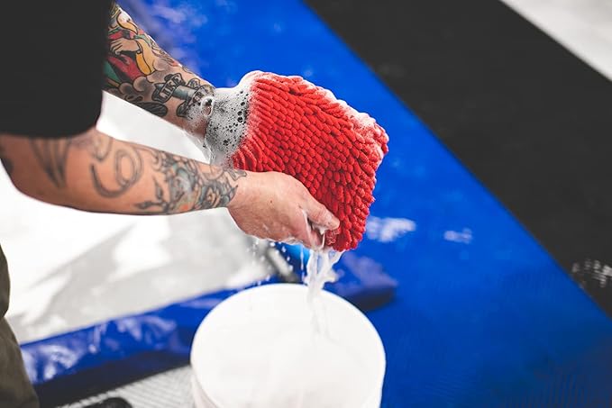 - Soft and absorbent 100% chenille is tagless and seamless to prevent scratching. Soft interior pad won't droop when wet like cheaper alternatives. Each wash mitt has been designed with you, our valued customer, in mind.