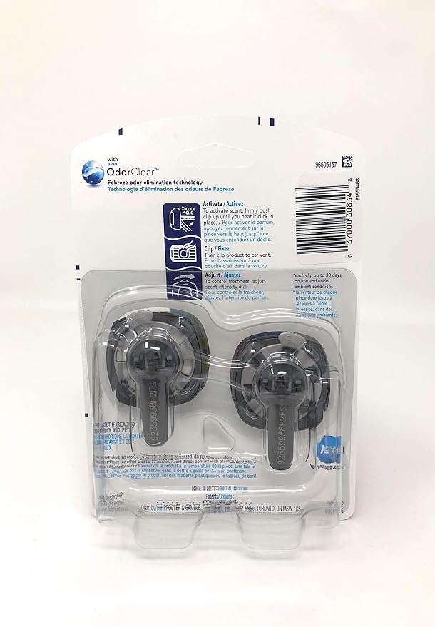 - FRESH SCENT UP TO 60 DAYS: These Febreze vent clip eliminates odors and slowly delivers a light, fresh scent for up to 60 days, on both low and under ambient conditions.