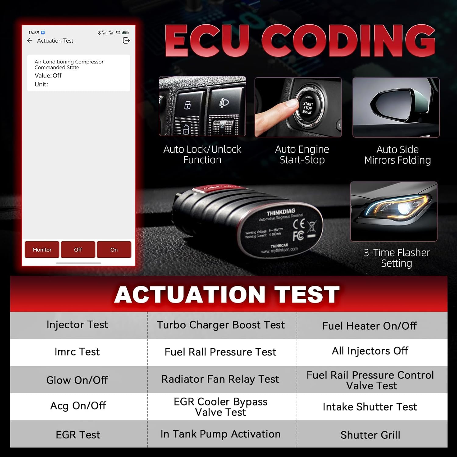 - 【⚙️ ECU Coding & Hidden Feature Activation】Thinkdiag diagnose obd2 scanner bluetooth allows you to match the replaced components with ECU, flash hidden functions for BMW, for GM, for Benz etc. Disable some annoying features, customize vehicle's settings to improve performance. No matter you are private owner or professional technician, Thinkdiag is a powerful and handy scanner in your repair tool list. ECU coding is not suitable for every car models, please check with us before purchse.