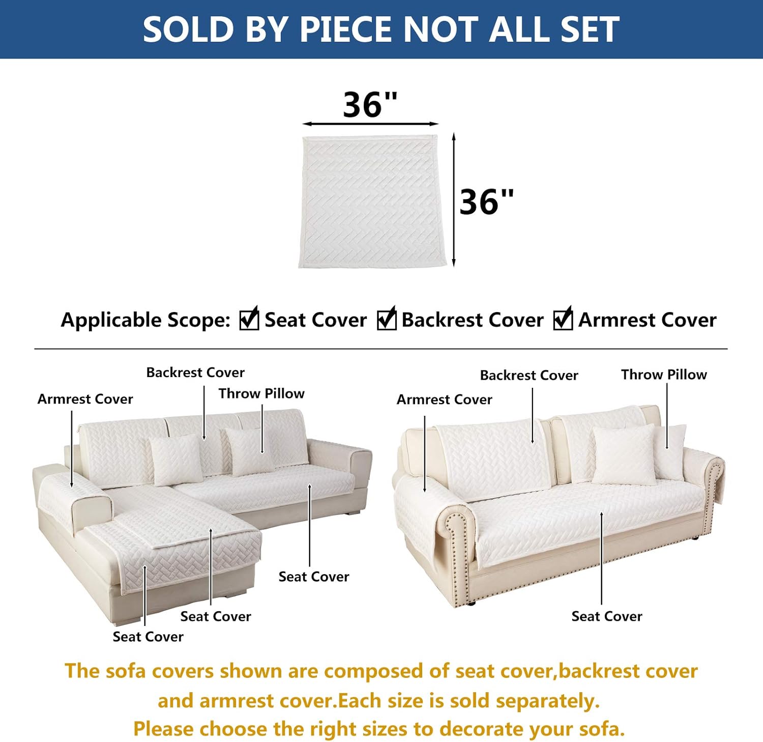 Eismodra Couch Cover,Sectional Couch Covers,Sofa Covers for 3 Cushion Couch,Anti-Slip Sofa Slipcovers for Dogs Cats Kids Loveseat Recliner L Shaped Armrest Backrest,White 36''x36''(Only 1 Piece)