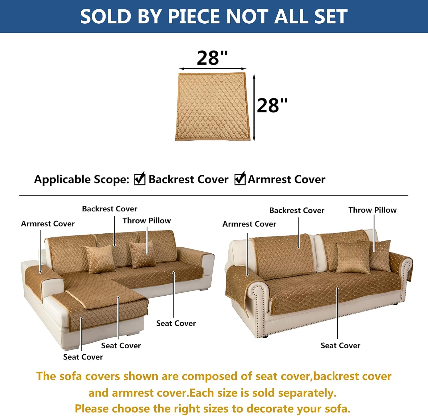 Eismodra Armrest Covers,Couch Cover,Sofa Cover,Backrest Covers,Anti-Slip Armchair Slipcovers for Dogs Cats Pet Loveseat Recliner Leather L Shaped,Coffee 28 x 28 Inches (Only 1 Piece)