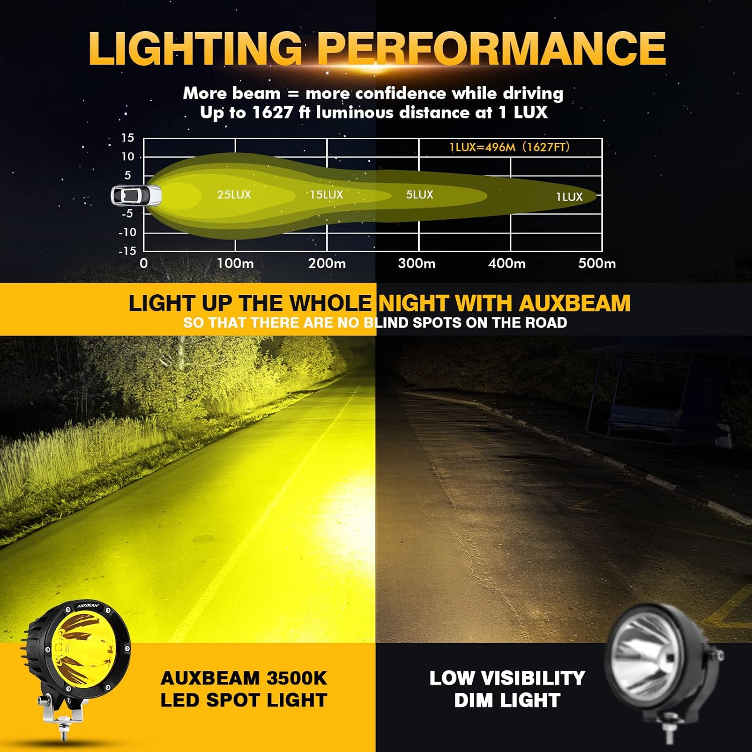 Auxbeam C4 Series 4 Inch 72W Amber Round LED Pods Spot Beam Automotive Offroad Lighting Yellow Fog Spot Light Bar for Trucks Car Motorcycle SUV ATV UTV Jeep Wrangler, Pair