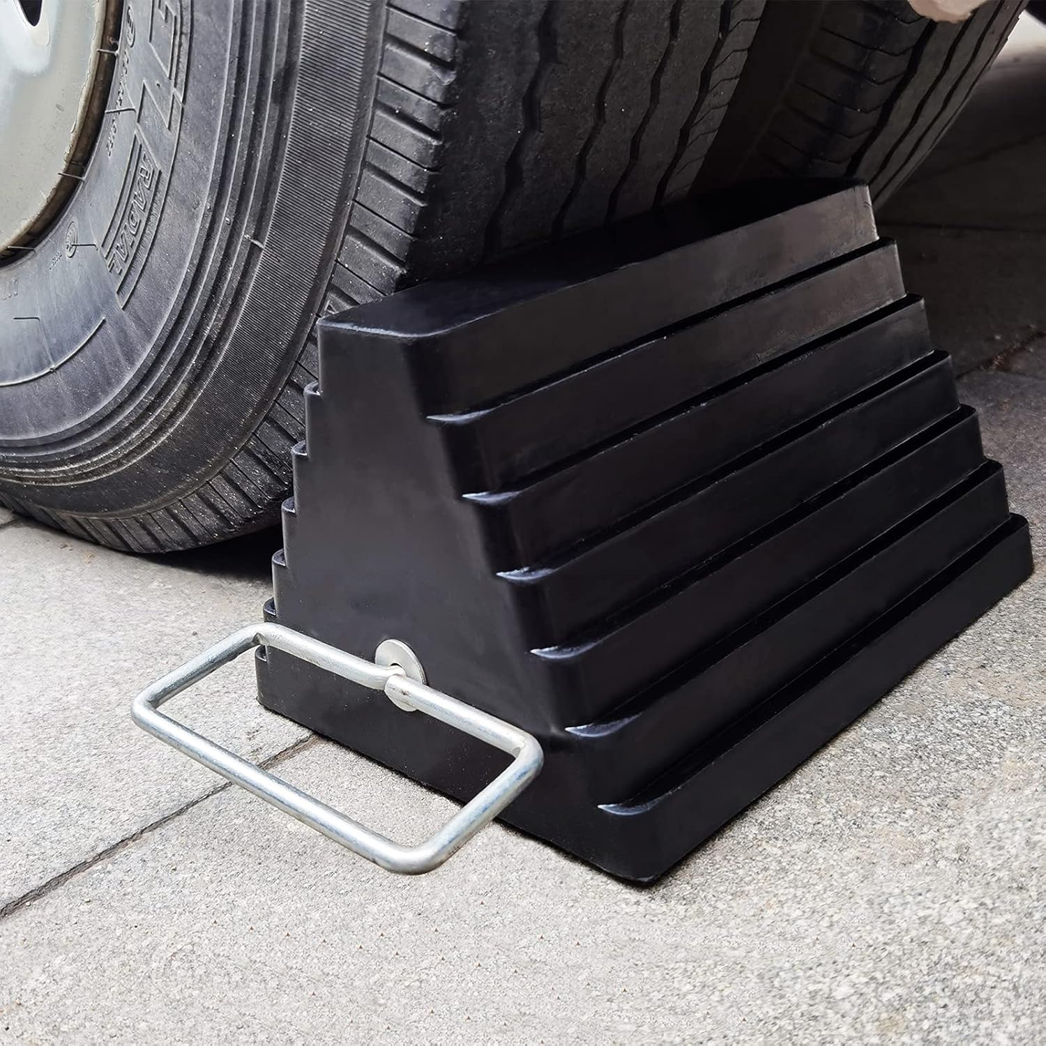 - Versatility: The triangular design makes the chock stably fix the tires. Compatible with trucks, cars, RVs, campers, boats, small airplanes, trailers, vans. When you are playing outdoors or parking, don't worry about the rolling of the vehicle. And it has reliable performance in any environment and climate
