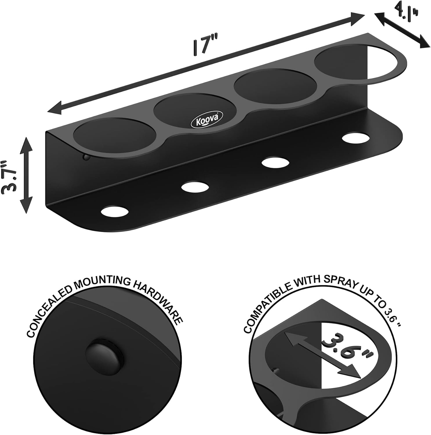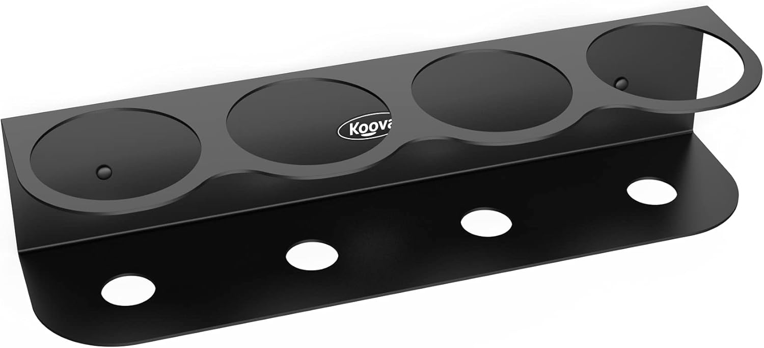Koova 4 All-Purpose Spray Bottle Holder | Easy Install Wall Mount Hardware Included | Heavy-Duty Powder Coated Steel Storage Rack for Garage And Home | Craft Workspace Paint Bottle Organizer USA Made